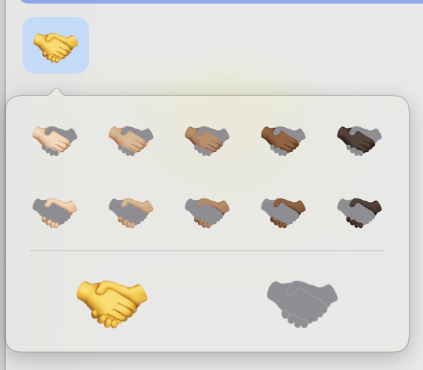 Apple added support for multi-skin tone handshake emojis in 2022, allowing you to go from the old standby of π€ to supporting handshakes like π«±π»βπ«²πΏ. However while these handshake emojis look similar, they're actually substantially different.