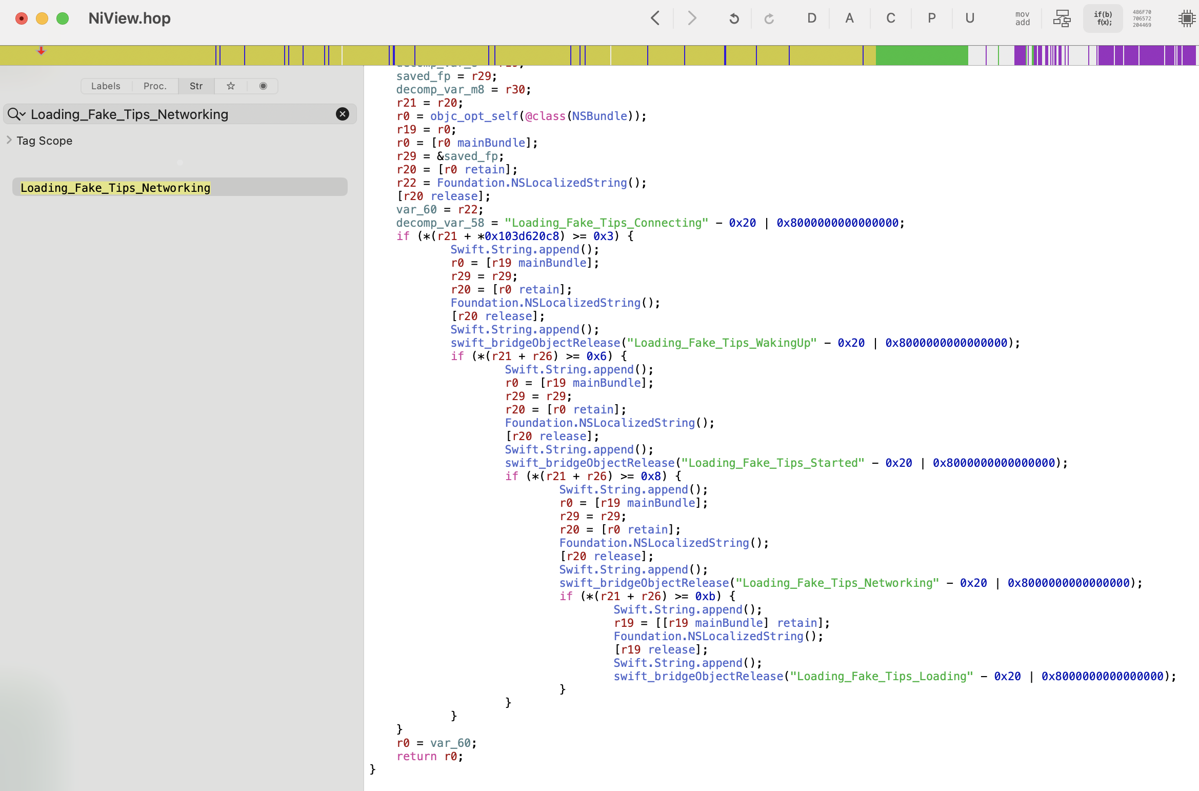 A quick check with Hopper shows that it just appends one of these Loading_Fake_Tips every few seconds to the UI as a placeholder while it does the actual action in the background.
