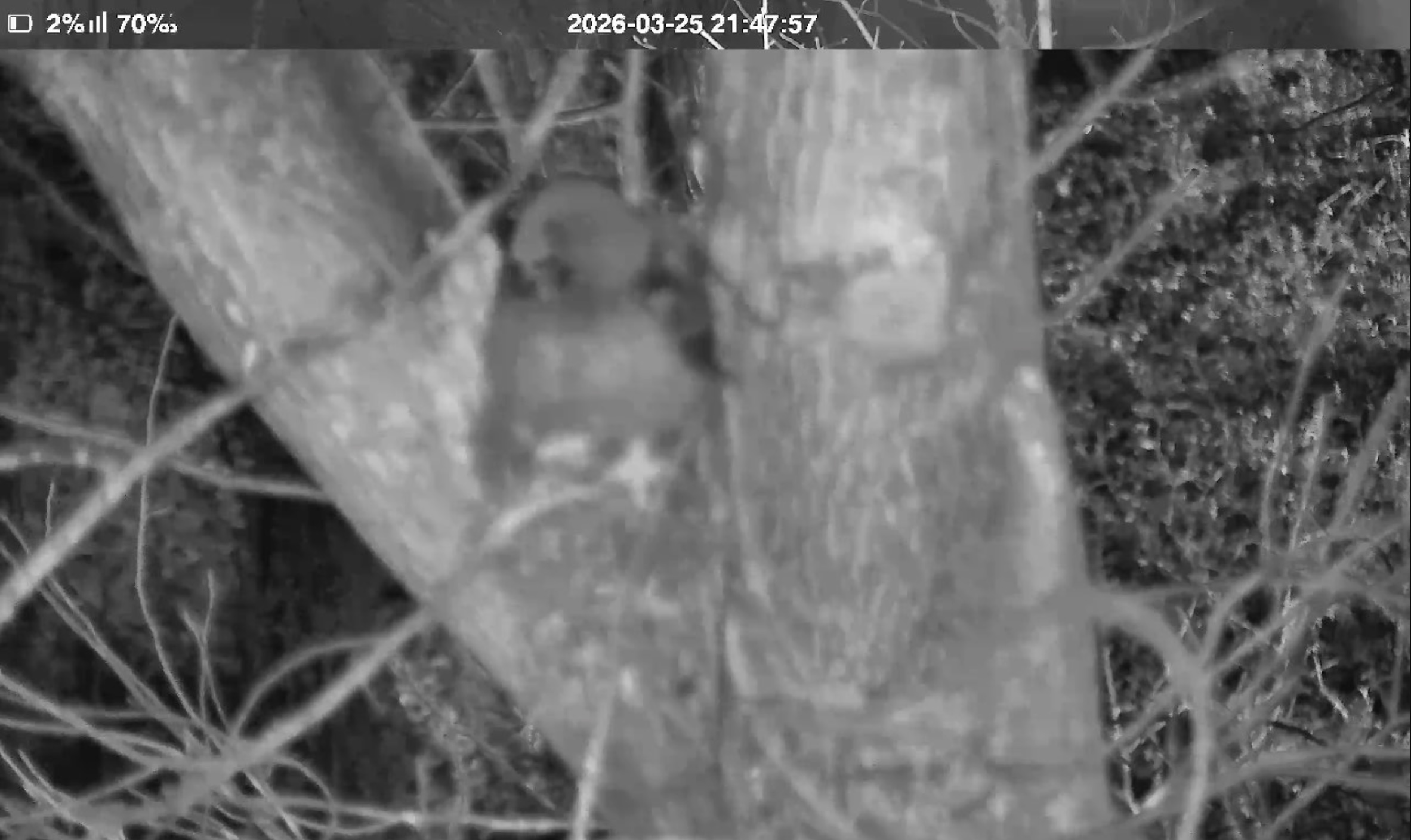 This was resolved with a very long USB-C cable and a good external battery for the week or so until the owlet fledged and took off. An engineering project as ephemeral as its subject, and for me nearly as fun as watching him devour a rabbit up in the tree! And next time, maybe get a security camera that supports RTSP out of the box?