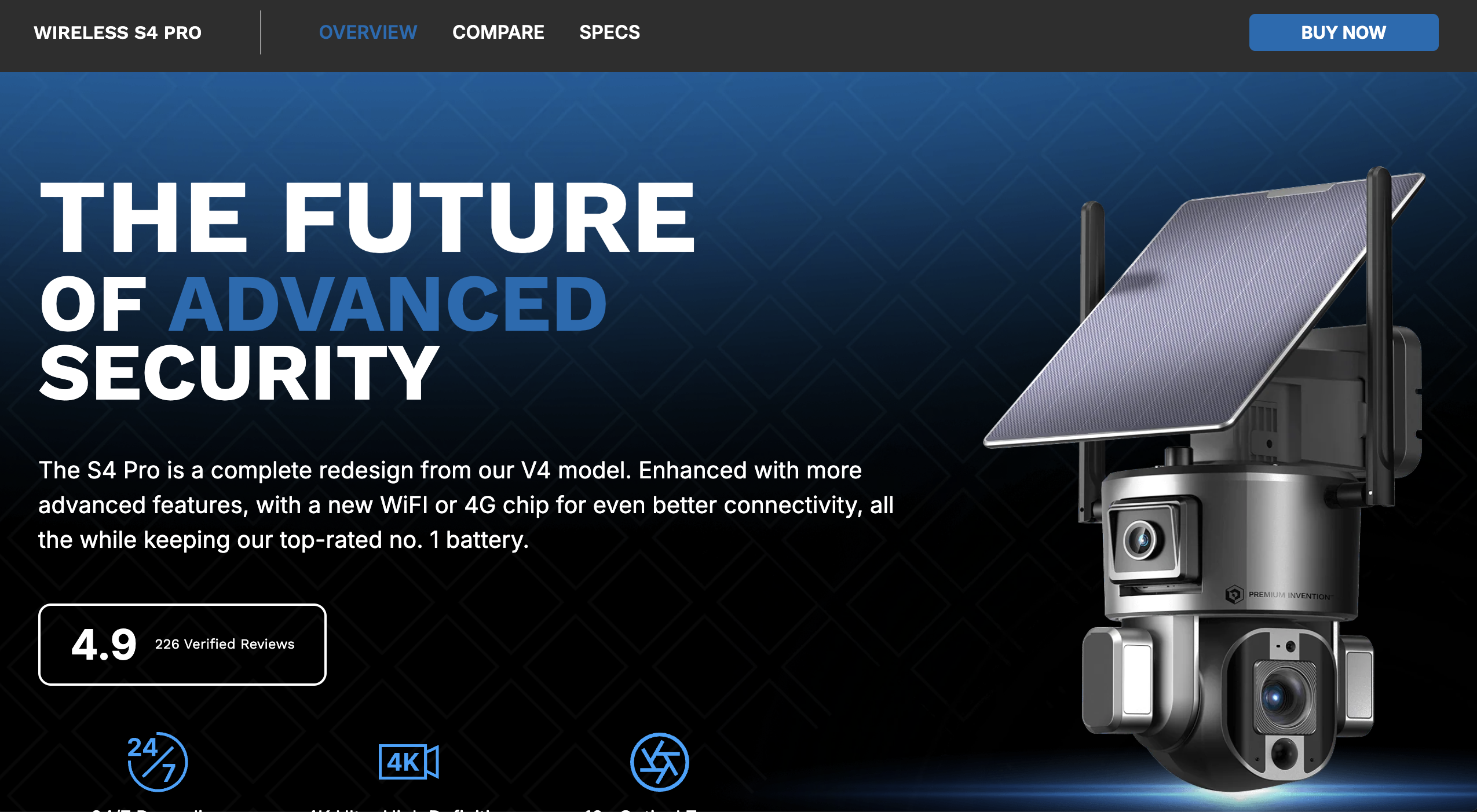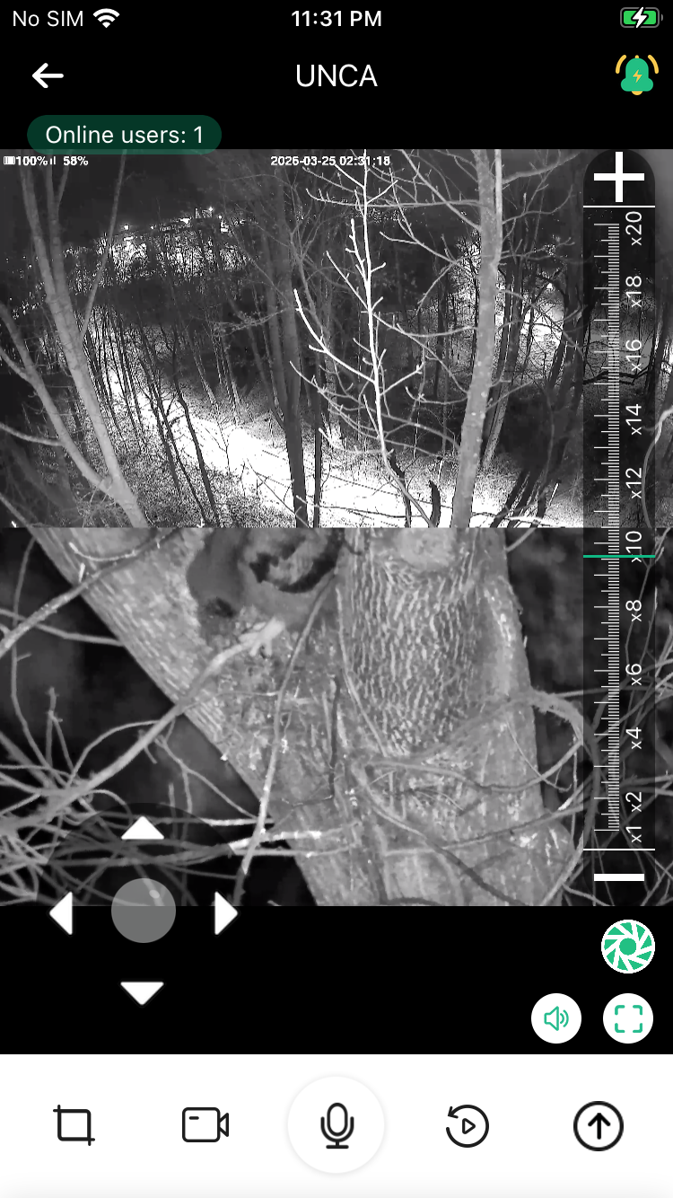 The camera that my brother ended up buying was an S4 Pro from Premium Invention which he promptly put 65ft up in a tree. The solar panels and 4G support make it great for set-and-forget security, but the app experience isn't great for livestreaming; the feed is controlled by an app, NiView, but the only way to see it is if Spence (as the camera owner) shares a link.